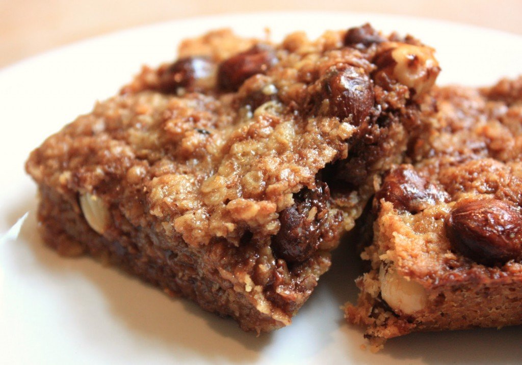 It only occurred to me whilst eating the second slice that this is a little reminiscent of Nutella. Now I don’t buy the stuff or really have an opinion of it but when flapjack reminds me of it, somehow that’s a good thing. The cherries can be omitted and substituted for any dried/candied fruit really. I know cherries are polarising.