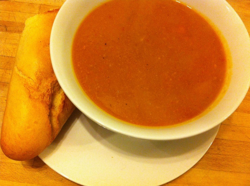 Throw the sausage into the large saucepan with the veggies and add the stock cube and harissa, then pour boiling water over the top until it comes to about an inch above the veggies. Pop onto a low heat to simmer and after 15 minutes blitz with a handheld blender or pop in a regular blender if you prefer. Check for heat (our harissa is homemade by Mr B and is fiery), add a little more harissa if you like and then some black pepper too. Probably won’t need salt as the stock cube provides a fair amount of that. Then add the beans and heat through on the stove for 5 more minutes. Serve with crusty bread and butter.