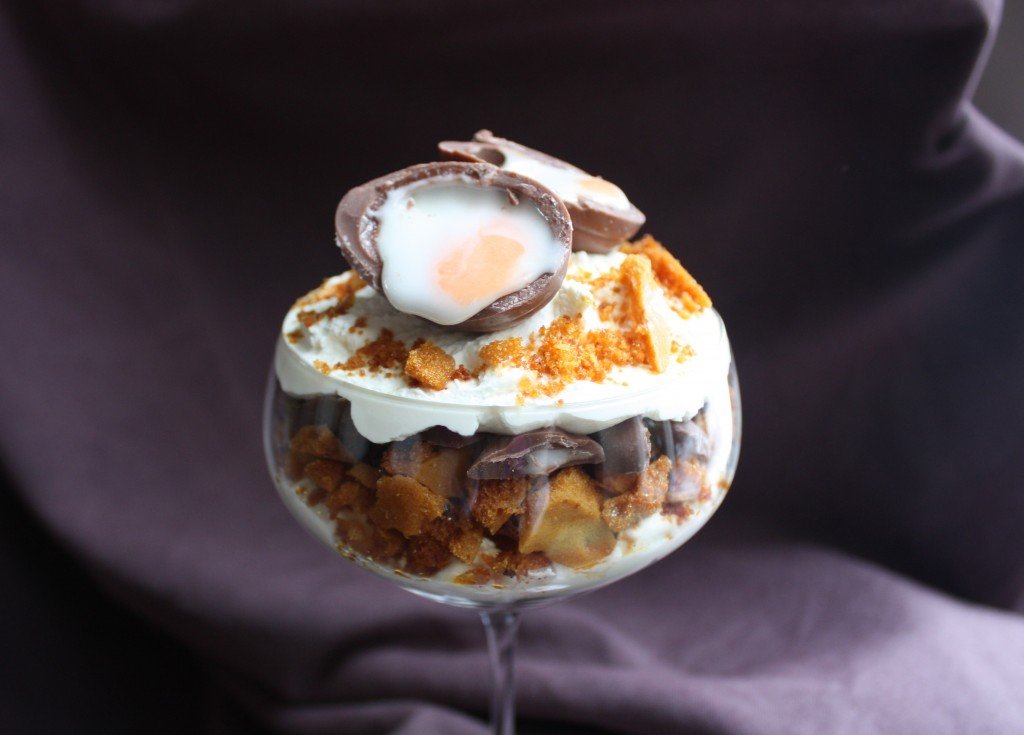 So here I am messing with the mighty Cadbury creme egg. I think I’ll make an exception for this dessert though. It’s Eton mess without any Old Etonians or raspberries. I do love a raspberry, but it’s Easter so the creme egg rules.