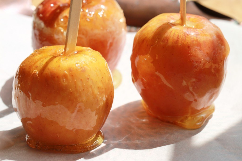 Why not try… Adding a dot of gel food colouring to the toffee to create psychedelic apples? You could also add chopped nuts or sprinkles to the apples as soon as you’ve covered them in toffee.