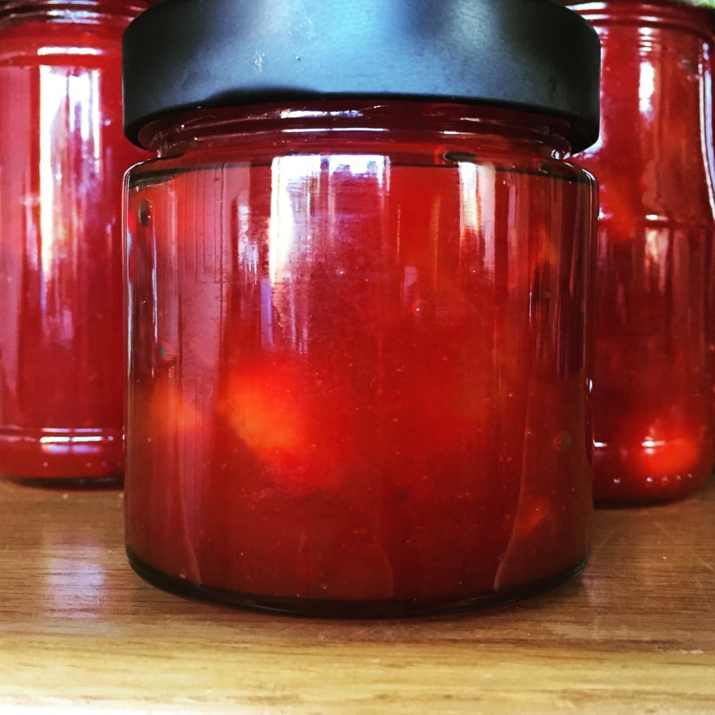 This here apple and chilli jam really lies somewhere between a chutney and a jam. It’s made from jam ingredients, but in my book jam should be sweet; something you spread on toast of a morning. This is anything but that.